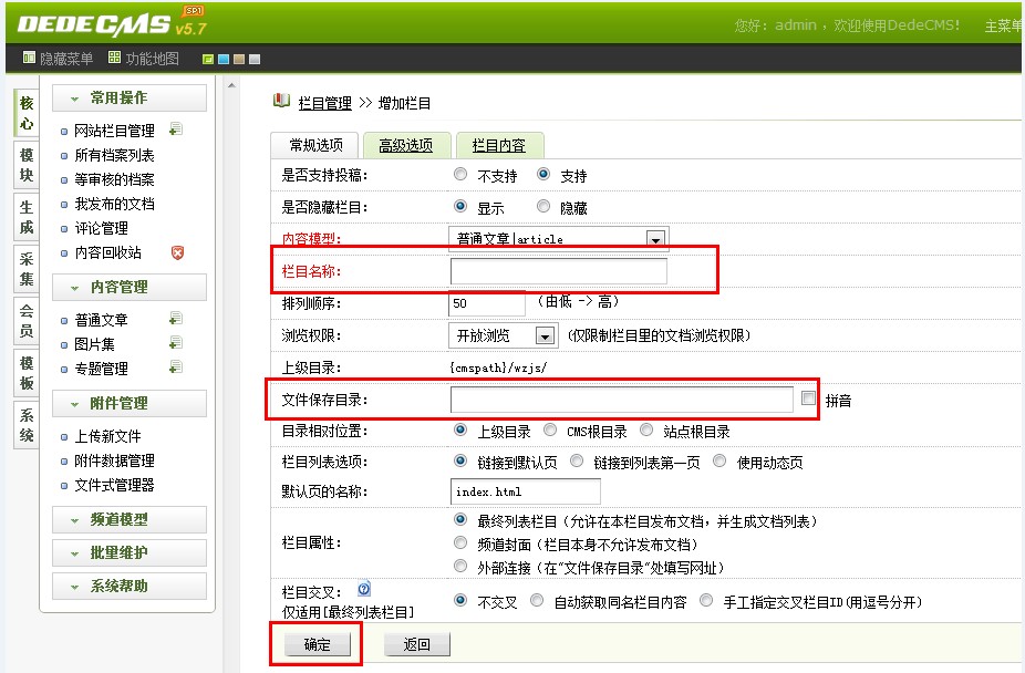 答:在后台的左侧菜单栏找到【网站栏目管理】 -> 【增加子类】-> 【栏目名称】-> 在【文件保存目录】任意填写字母即可。