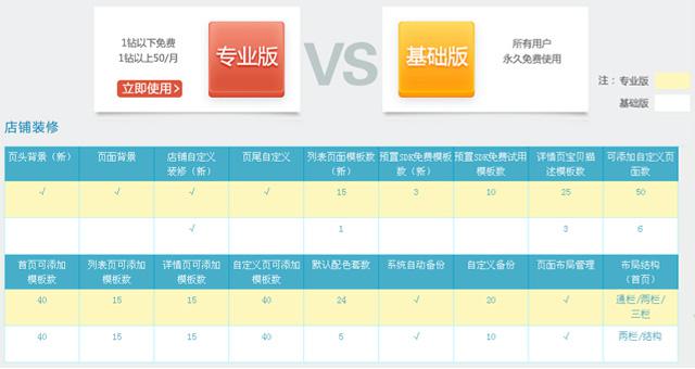 对于淘宝的新店长而言,可以先用专业版的模板免费试用一段时间,熟悉一下淘宝商城的各种操作及相关流程。但当信誉等级达到一钻之后,每个月50元的费用,可不是每一位淘宝店主都能受得了的!所以小编还是建议各位小店主用几百块钱去买一个模板,毕竟你的商城可不是只开一两个月,购买模板才是明智之举!