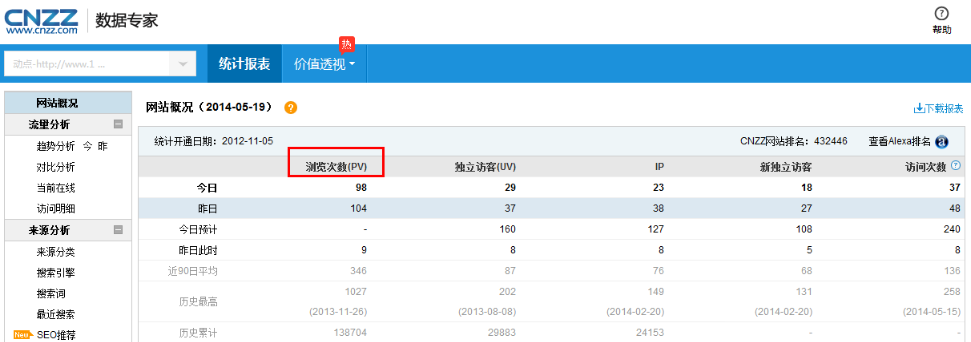 众所周知站长们在优化网站时,常用到的工具有:站长工具和站长数据统计。站长数据中,网页PV是百度评价网站流量常用的指标之一,那么什么是PV呢?小编在这里给新站长们详细解析下这个疑问。如下图