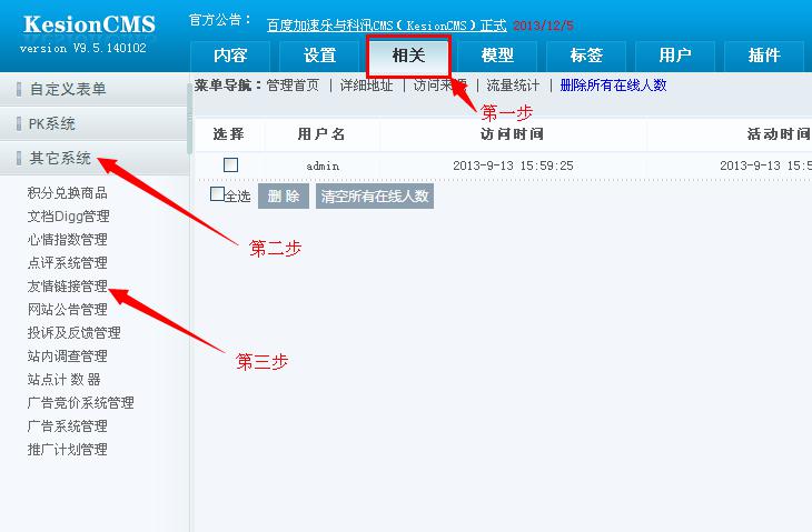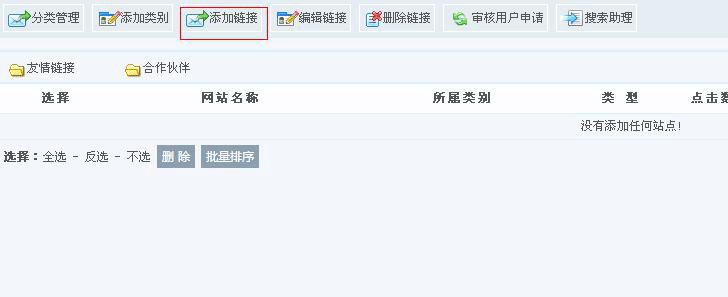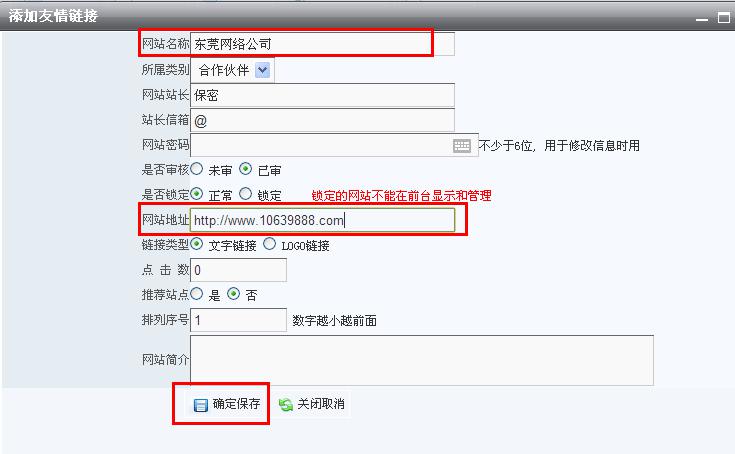 步骤为:相关→→其他系统→→友情链接管理→→添加链接→→填写网站名称、网址→→确定保存。(如图 5-1、5-2、5-3)