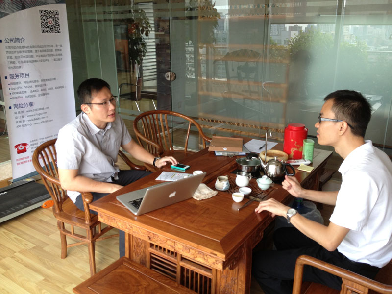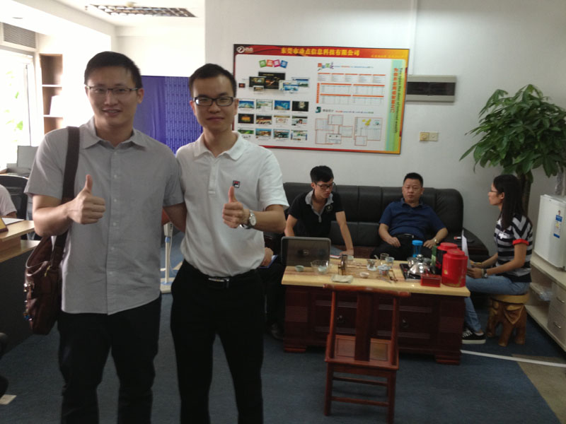 鑫荣粉体科技蔡生与我司营销高手梁经理洽谈合作中