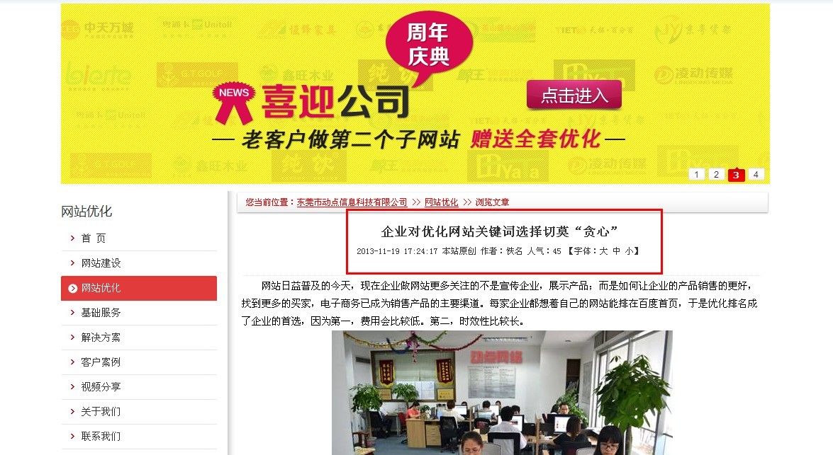 动点网络,在东莞来说,不算新起之秀了,但知名度随着时间的沉淀越来越被客户所熟悉和喜欢,很多客户在做完个网站后,后面接二连三的做七、八个网站,动点确实助他们在这竞争激烈的市场中找到了属于自己一片天,我们与客户的企业一起见证成长的足迹。我们想要的很简单,就是与客户创造“双赢”,我们不单是只做网站,更是急客户所急,响客户之所想。我们要让每个在我们动点做网站的客户,真正找到自己做网站的价值。