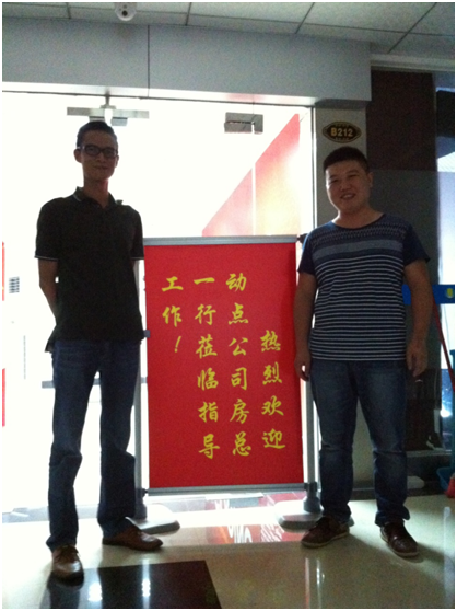 谷什食品科技潘总(右)到动点交流指导,并与动点房总(左)合影留念