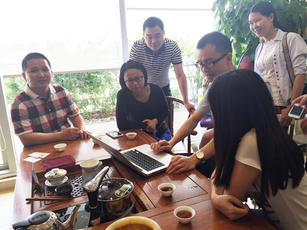我司动点房总(左一)与品位集团一行人交流网络营销经验