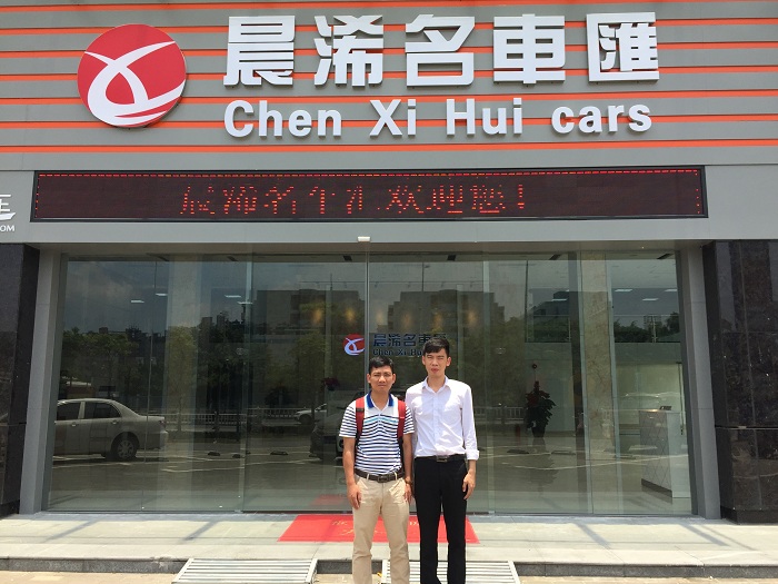 我司叶工(右一)和晨浠名车汇戴先生(左一)合影留念