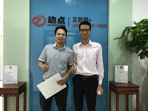 我司动点网络骆工(左)与兰台办公用品蔡总(右)合影留念