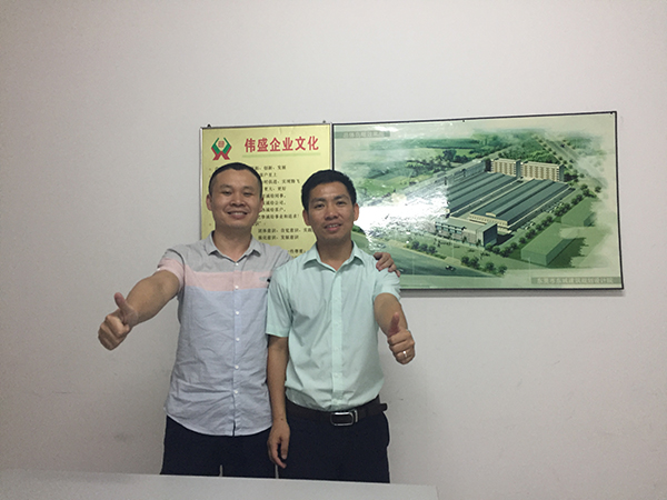 伟盛饮料陈经理(左)动点叶工(右)合影留念